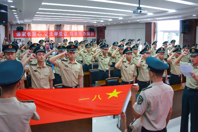 “我为我今天的选择而骄傲,我为明天的事业而自豪!我决心服从命令,听从指挥!”铮铮誓言,掷地有声。53名国防生即将开启不一样的热血逐梦之旅。