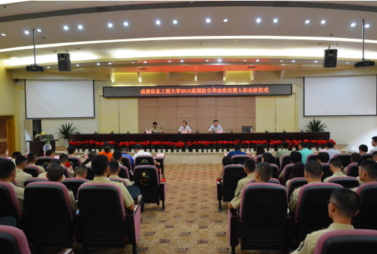【本网讯】7月4日上午,我校2016届毕业国防生欢送暨入伍出征仪式在国际会议厅成功举办。学校党委书记赖廷谦、校长周激流、副校长于世祥,相关职能部门负责人,毕业年级国防生培养学院党总支书记、副书记,驻校选培办、学生工作处相关人员、2016届毕业国防生及在校国防生代表参加了出征仪式。仪式由王主任主持。