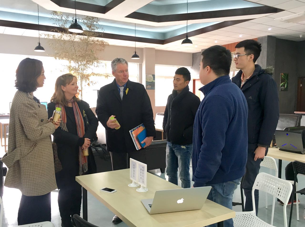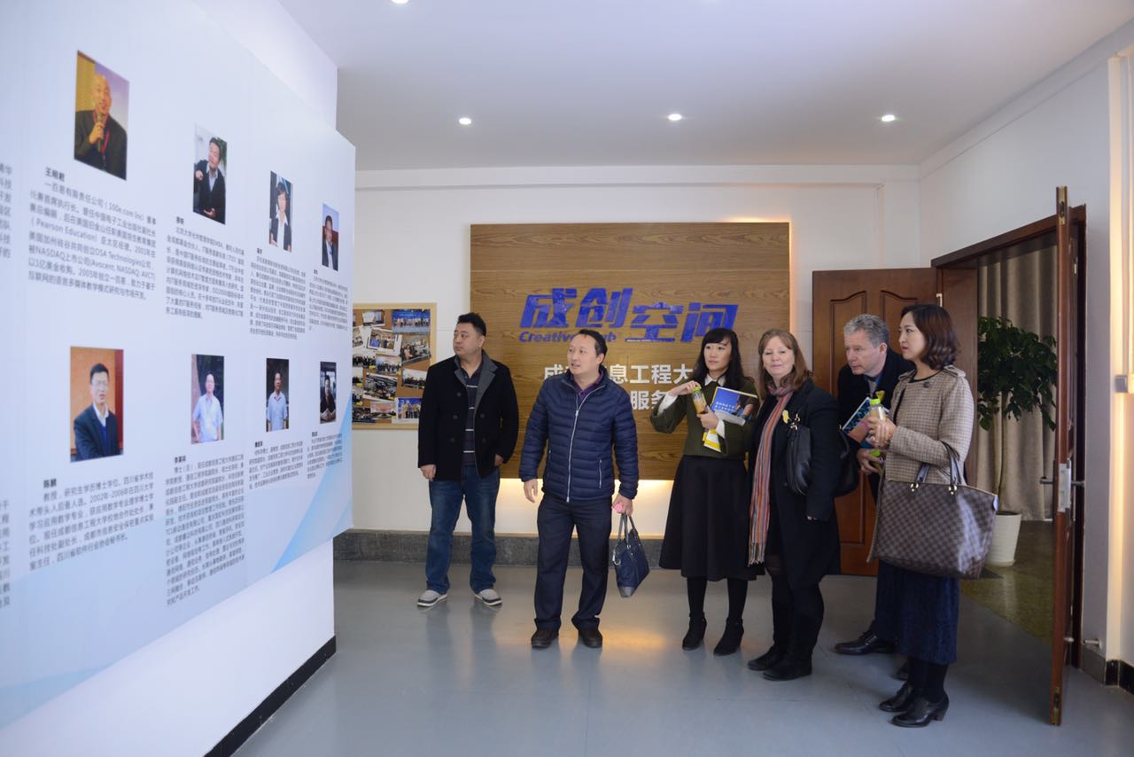 会上,段黔冰向来访客人表示热烈欢迎。陈敏介绍了我校大学生创新创业项目、学分课程等基本情况,以及学生获得专利和受资助情况。宋波介绍了我校大学科技园、成都研究院、成创空间的情况,并列举数个通过我校平台孵化的企业成功案例,介绍了成创空间的运营模式和成果。Dr. Claire McGowan对我校成创空间展现出浓厚的兴趣,就宋主任介绍的情况展开了进一步讨论。随后,Tony O’Brien介绍怀卡托理工学院在大学生创新创业方面开展工作情况,双方就合作方向和模式进行讨论,为后续合作奠定了基础。