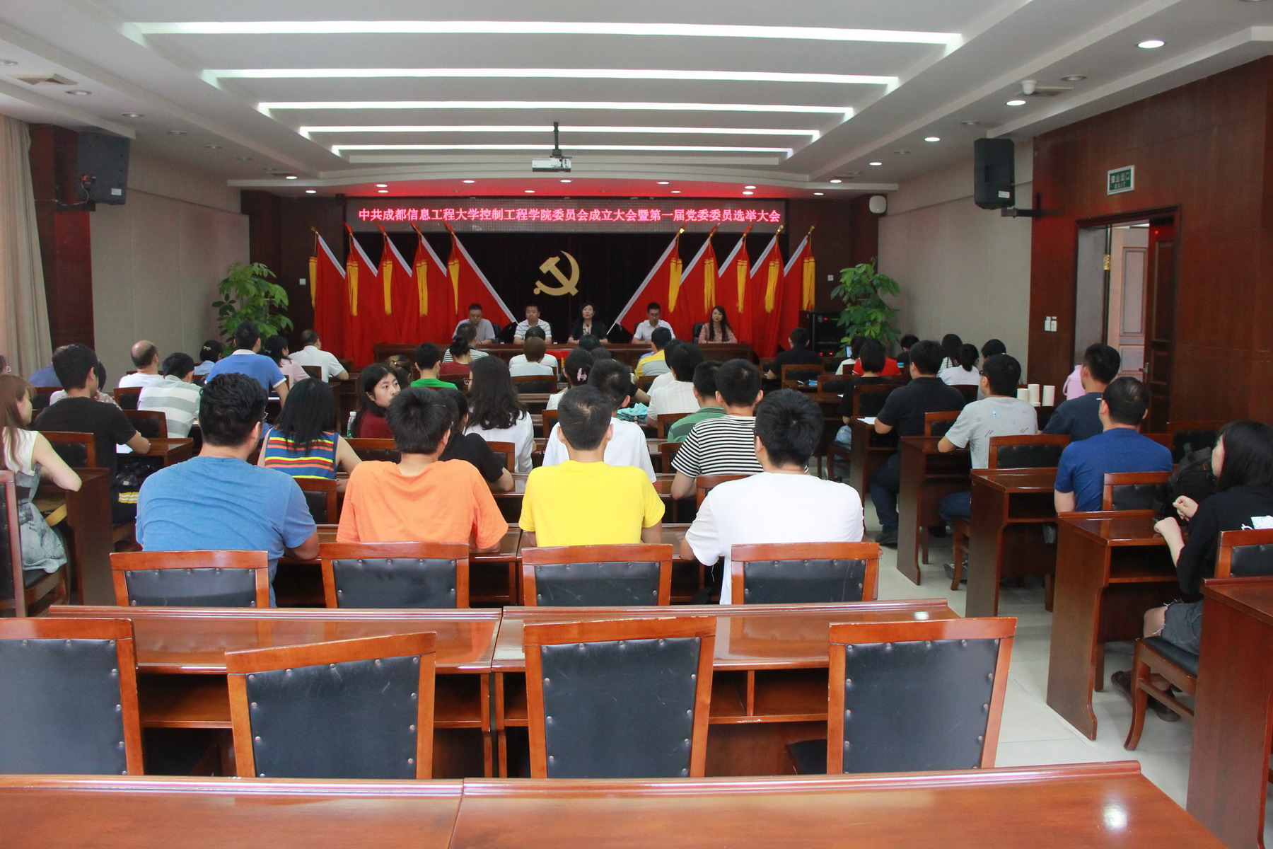【本网讯】79日下午,在庄严的《国歌》声中,中共问鼎在线官网(中国)控制工程学院委员会成立大会暨第一届党委委员选举大会在行政楼第一会议室召开。控制工程学院分党委所属4个支部的中共正式党员参加大会,学院非中共党员的领导干部、科研骨干教师、民主党派人士列席会议。大会应到正式党员77名,实到65名。会议由学院分党委书记王嵩同志主持。